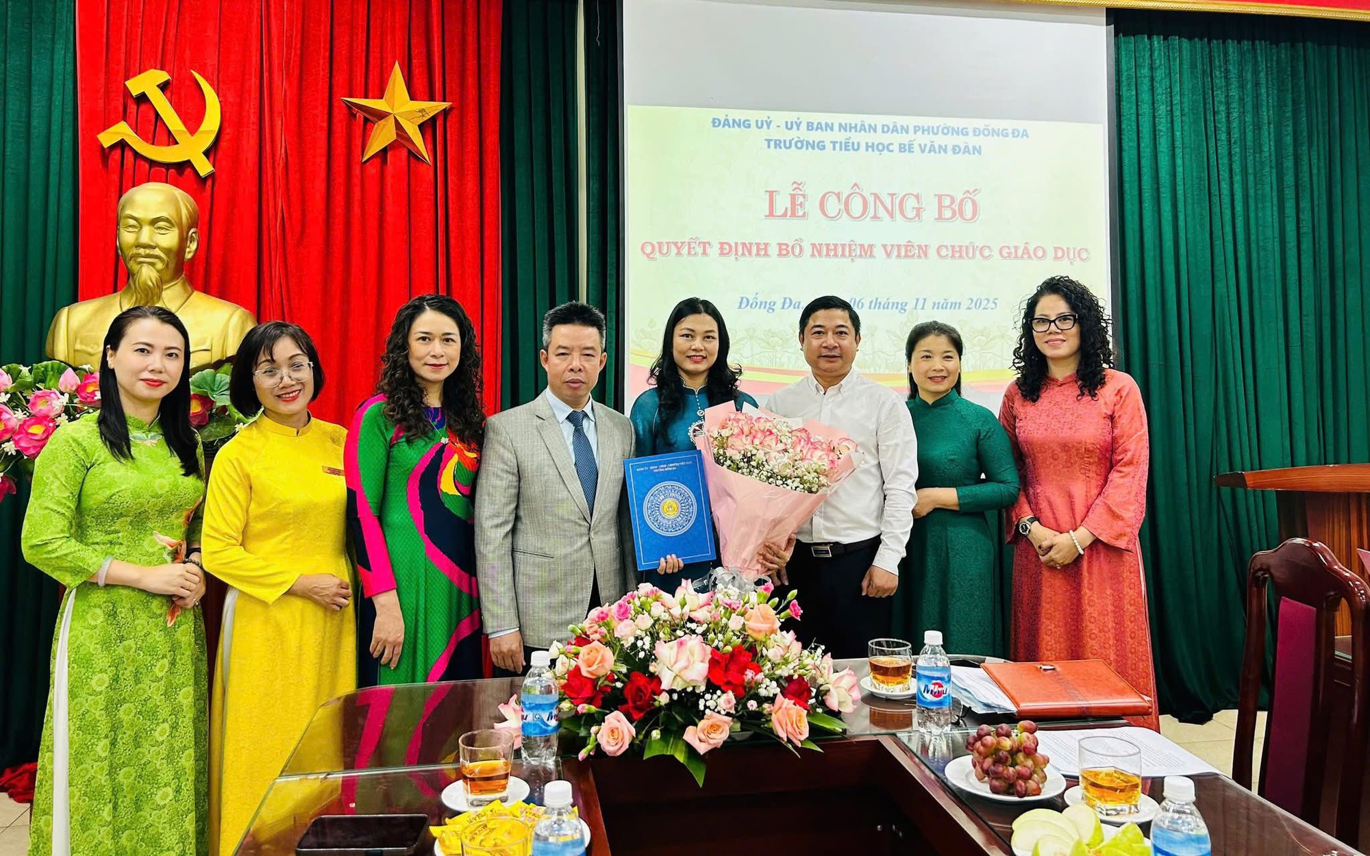 Chiều 06/11, trường Tiểu học Bế Văn Đàn tổ chức lễ đón chào Nhà giáo Đào Ngọc Hà được bổ nhiệm giữ chức vụ Phó Hiệu trưởng theo quyết định phân công cán bộ năm 2025 của UBND phường Đống Đa.